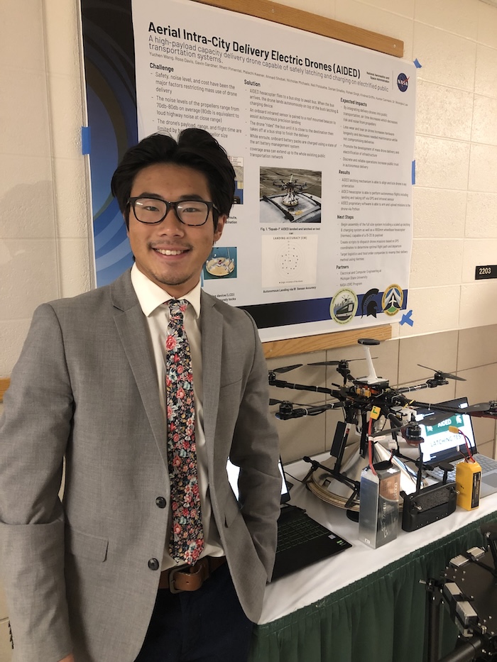 Yuchen Wang, will receive a bachelor’s degree in electrical engineering. He has been a leader and serves as team captain of a group of Spartan Engineers who devised an innovative idea for NASA -- electric drones that "catch a ride" on public buses. After graduating, he’s headed to Bosch to be a hydrogen vehicle engineer.