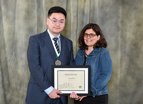 First Place: Liang Zhao, Civil and Environmental Engineering (Advisor: Irene Xagoraraki); receives a $2,000 stipend, plus a certificate and medal to wear at graduation