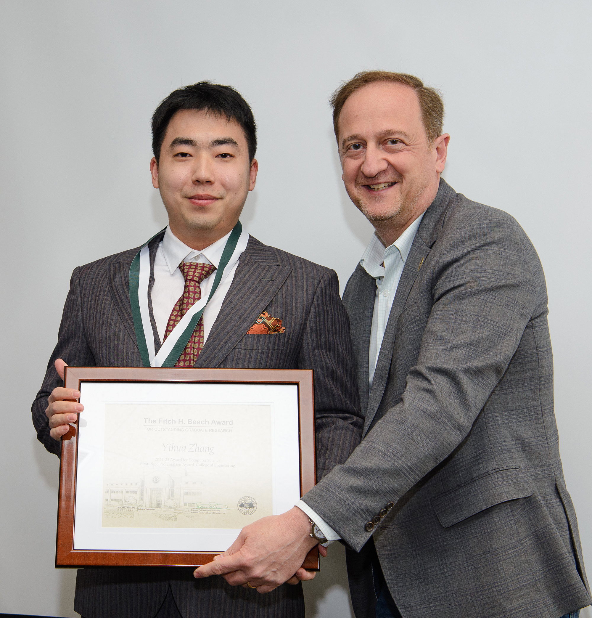 The Fitch Beach Award is the most prestigious graduate research prize in the College of Engineering. Established by Janet M. Beatty in honor of her uncle, Fitch H. Beach, this award recognizes the most outstanding PhD student researchers within the College of Engineering. The faculty within each department selects one nominee, and the award is judged based on nominees’ records and presentations. Winners receive stipends, a certificate, and a medal worn at graduation.
