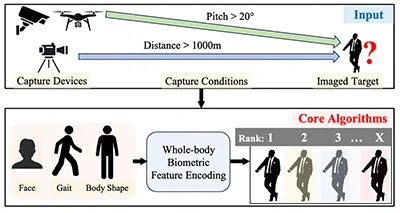 “We were surprised to learn that a person’s height, build and gait often contain more useful biometric information than their face when capturing images from a long distance,” said Liu.