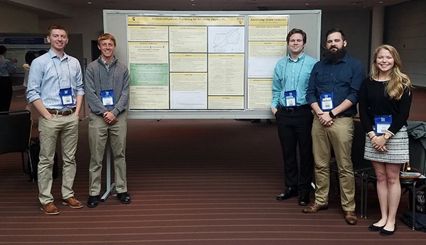 The team of Marc Rasmussen, Ryan Daniels, Kelsea Pohl, David Jackson, and Andrew Sjogren placed fourth for their analysis of hydraulic fracturing in Pennsylvania's Allegheny County. Their presentation offered alternatives to fracking and discussed possible pollutants and ozone concerns, as well as reviewing options related to permits, modeling, and technology challenges.