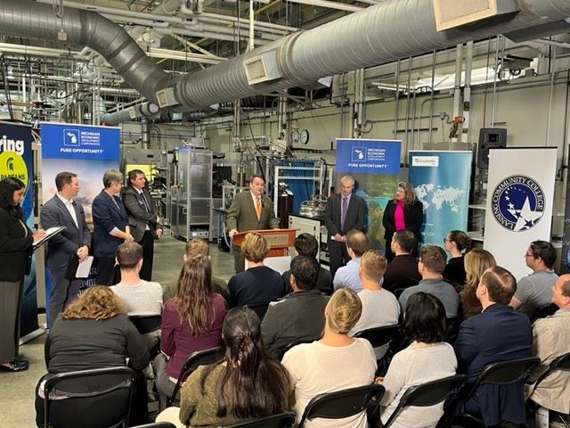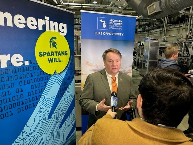 MSU College of Engineering Dean Leo Kempel and officials from the Michigan Economic Development Corporation, Lansing Community College and Fraunhofer USA shared groundbreaking investment news.