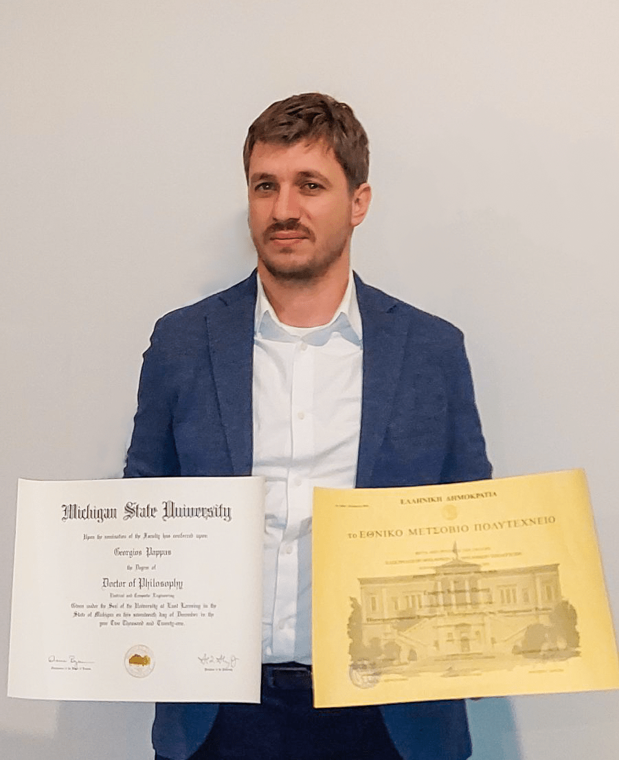 Pappas completed one interdisciplinary, combined thesis and earned two Ph.D. degrees in Electrical and Computer Engineering upon graduation, one from MSU and one from NTUA.