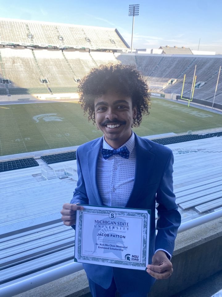 Patton, of Southfield, Michigan, is a member of the National Society of Black Engineers and the Michigander Scholars program. Additionally, he plays trombone in the Spartan Marching Band and Spartan Brass. He received his scholarship award at the 2024 Dean's Showcase of Stars on Feb. 20.