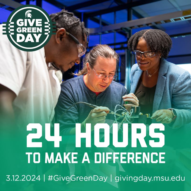 Tuesday, March 12 – Give Green Day – is an opportunity for Spartans everywhere to support the College of Engineering’s student emergency and inclusion and diversity funds.