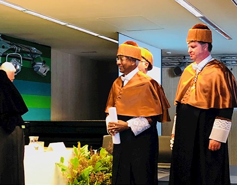 For advancing pattern recognition for 50 years, Anil Jain of Michigan State University was presented an honorary doctorate by the Autonomous University of Madrid (UAM) during ceremonies in Spain in September. Jain is a University Distinguished Professor of computer science and engineering and a member of the National Academy of Engineering.