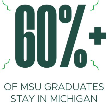 MSU has developed talent for Michigan for more than 165 years, fueled by its land-grant mission to educate students prepared to positively contribute to society. Industrious, enterprising and empowered by an education grounded in addressing real-world needs, MSU alumni impact industries and communities across Michigan.