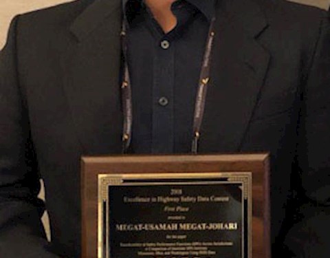 New PhD student Megat Usamah Megat-Johari has been awarded the 2018 Highway Safety Information System Excellence in Highway Safety Data Award. He was honored Aug. 21 in Minneapolis.
