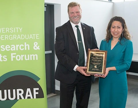 MSU Spartan students have spoken. Ilce Medina-Meza was voted the Undergraduate Research Mentor of the Year – an honor presented during the University Undergraduate Research and Arts Forum (UURAF) in April.