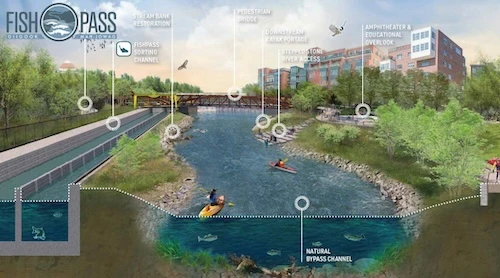 FishPass is the culmination of an effort to reconnect the Boardman/Ottaway River in Traverse City with Lake Michigan. Construction workers broke ground on the project in May, and the state of Michigan recently earmarked $1 million in its budget to support the GLFC efforts. Once FishPass is complete, the goal is to create replicable technology that can be used around the world as a model for invasive species control.