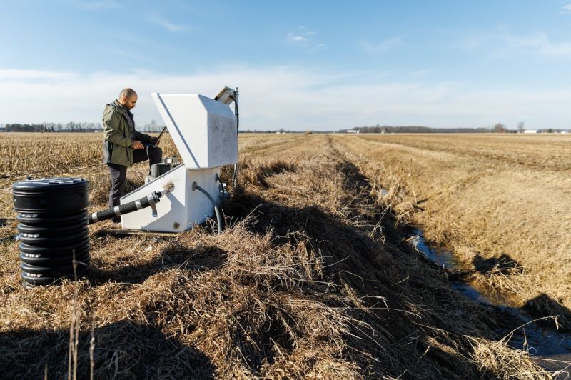 Ghane and the Isleys are examining the effectiveness of a water management system — controlled drainage — to see how it is best implemented and how effective this system is at keeping nutrients in fields rather than draining into surrounding waterways where they can create harmful algae blooms.