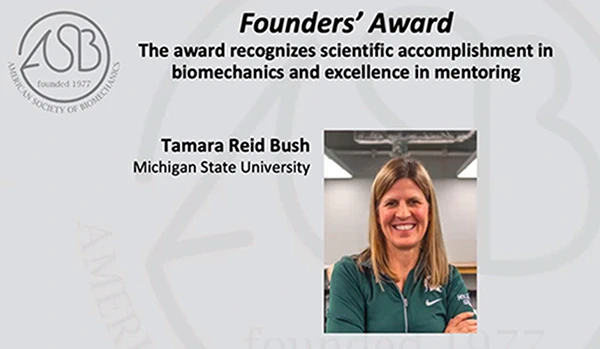 MSU Foundation Professor James Klausner, chair of the Department of Mechanical Engineering, called Reid Bush an outstanding scholar and said the ASB Founders' Award is reflective of the transformational biomechanics research that she consistently delivers.