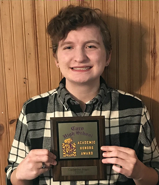 • Catherine Anger of Caro, Michigan, is a member of the Honors College and will study computer science and media and information. She is a graduate of Caro High School. Her goal is to cultivate her skills in engineering and programming and channel them into her passion for film and visual storytelling through computer graphics and creating more efficient methods of producing practical effects. She hopes to be a film director and producer someday.