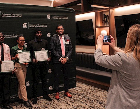 The Michigan State University College of Engineering, corporate scholarship sponsors and alumni recognized 160 students for their academic and participation achievements during this year’s Dean’s Showcase of Stars. More than $140,000 in scholarships were presented to students at the annual event.