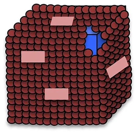 Prussian blue nanoparticle squares covered in exomes or cells so that the particles can cross the blood brain barrier. Credit: Meghan Hill