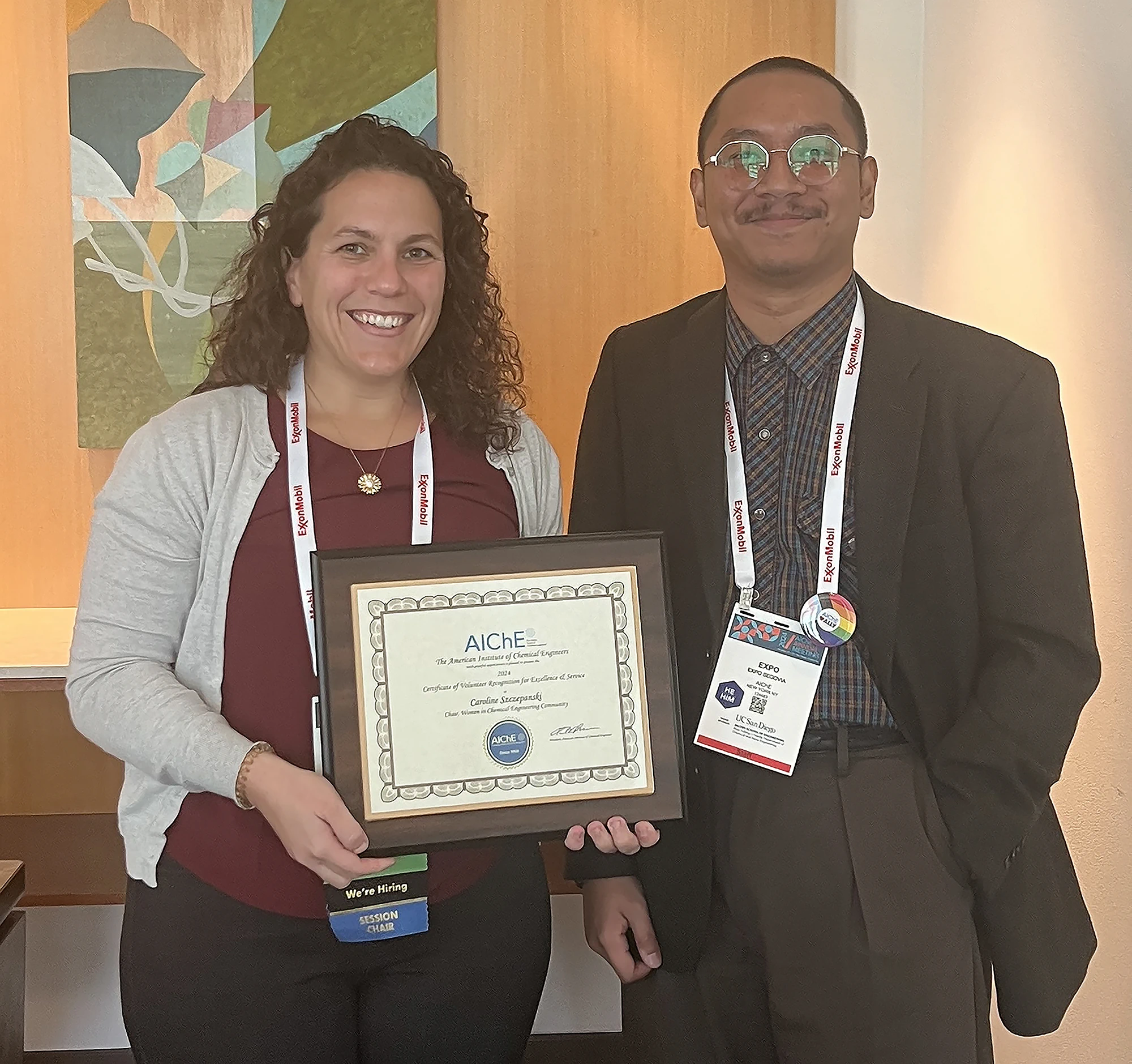 Caroline Szczepanski, an assistant professor of chemical engineering and materials science who works on bio-inspired polymer materials, believes that service is key to advancing professional development. Her commitment was rewarded in October when the American Institute of Chemical Engineers (AIChE) presented her with a national recognition for leading the Women in Chemical Engineering Community. Caroline talks about national-level volunteering in this Q & A.