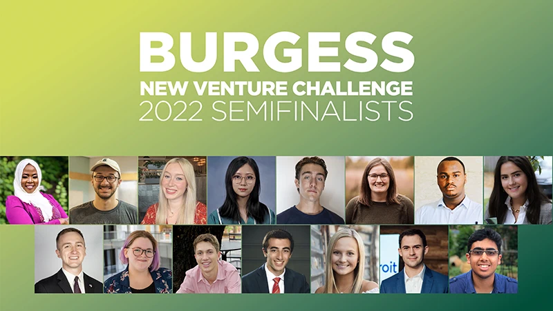 "The Burgess New Venture Challenge is more than a competition," said Ken Szymusiak, managing director of academic programs for the Burgess Institute. "This is high-stakes experiential learning. These 15 semifinalists must prove their ideas are viable, the market demands their solutions, and, ultimately, their value propositions hold up to scrutiny."