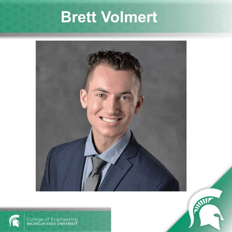 Volmert is a Ph.D. candidate in the MSU College of Engineering’s Department of Biomedical Engineering. He obtained a B.S. in biomaterials engineering from the University of Illinois and is the recipient of the James Scholar Honors Award and Academic Achievement Withrow Fellowship Award.