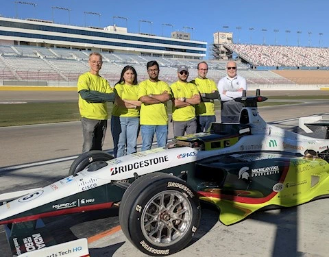 SpARC supports the PoliMOVE-MSU team, which is fielding a race car and competing with other university-lead teams as part of the Indy Autonomous Challenge (IAC). All teams are provided identical vehicles with added sensors and computers that replace the driver. Each team must develop algorithms and software so that their car can achieve fully autonomous, high-speed racing.