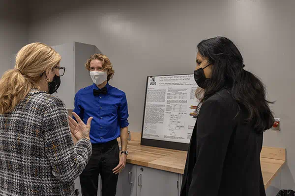 Michigan State University President Samuel L. Stanley Jr., M.D., and other university leaders officially introduced a newly renovated, engineering-focused teaching and lab space in Wonders Hall to the community with a ribbon-cutting ceremony on Friday, Dec. 10. The transformation of the former cafeteria provides an opportunity to provide a significant mix of teaching and learning spaces, including the Engineering Student Innovation Center, a space focused on supporting the College of Engineering CoRe Experience (Cornerstone Engineering and Residential Experience).